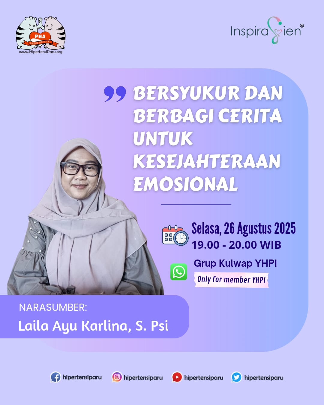 Kadang udh terus terang mbak, tapi ga semua masalah perlu kita ceritakan bukan? Berlahan saya kasih pengertian bahwa tampak baik2 saja blm tentu benar adanya pas jalan udah ngos2an. Akhirnya saya kasih aja tulisan tentang Hipertensi Paru ke mereka. Barulah paham