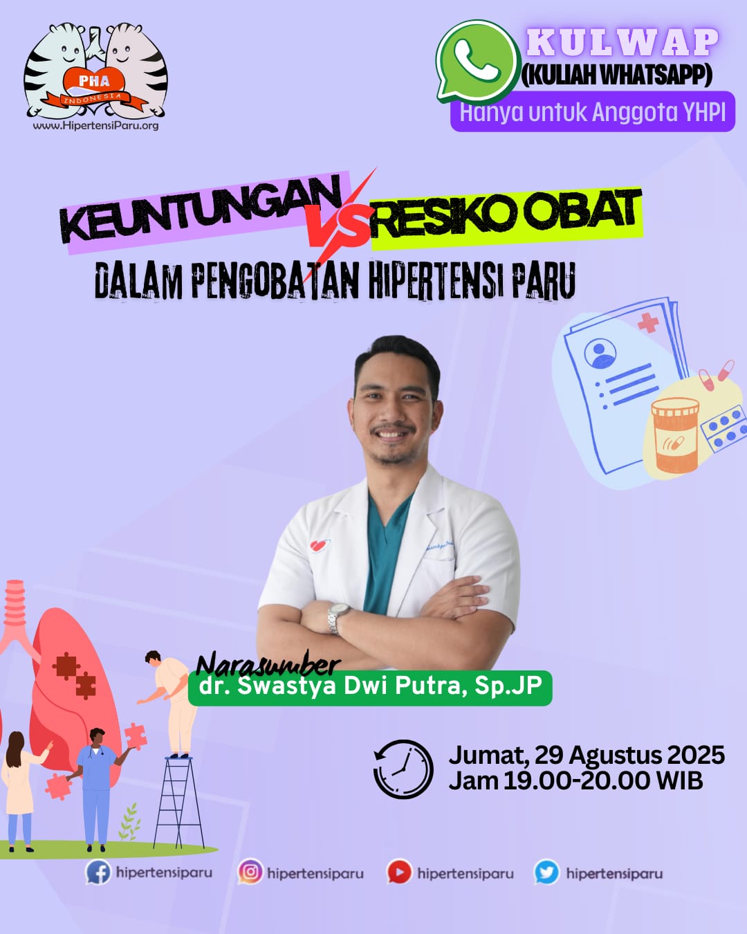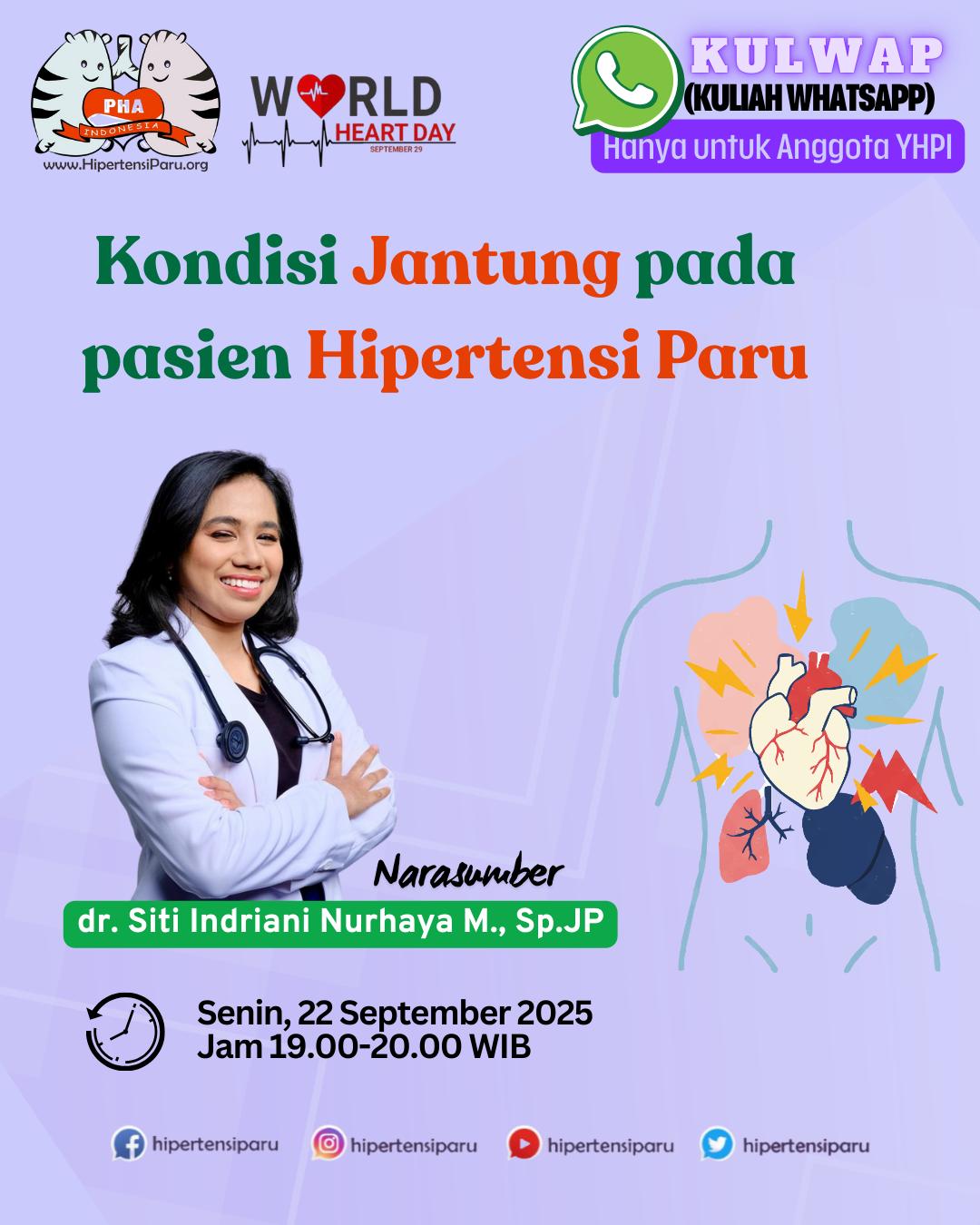 Kuliah Whatsapp adalah program tanya jawab lewat group di aplikasi whatsapp antara anggota YHPI dengan dokter/narasumber ahli lainnya untuk topik-topik terkait Hipertensi Paru yang diadakan secara rutin dan berkala.