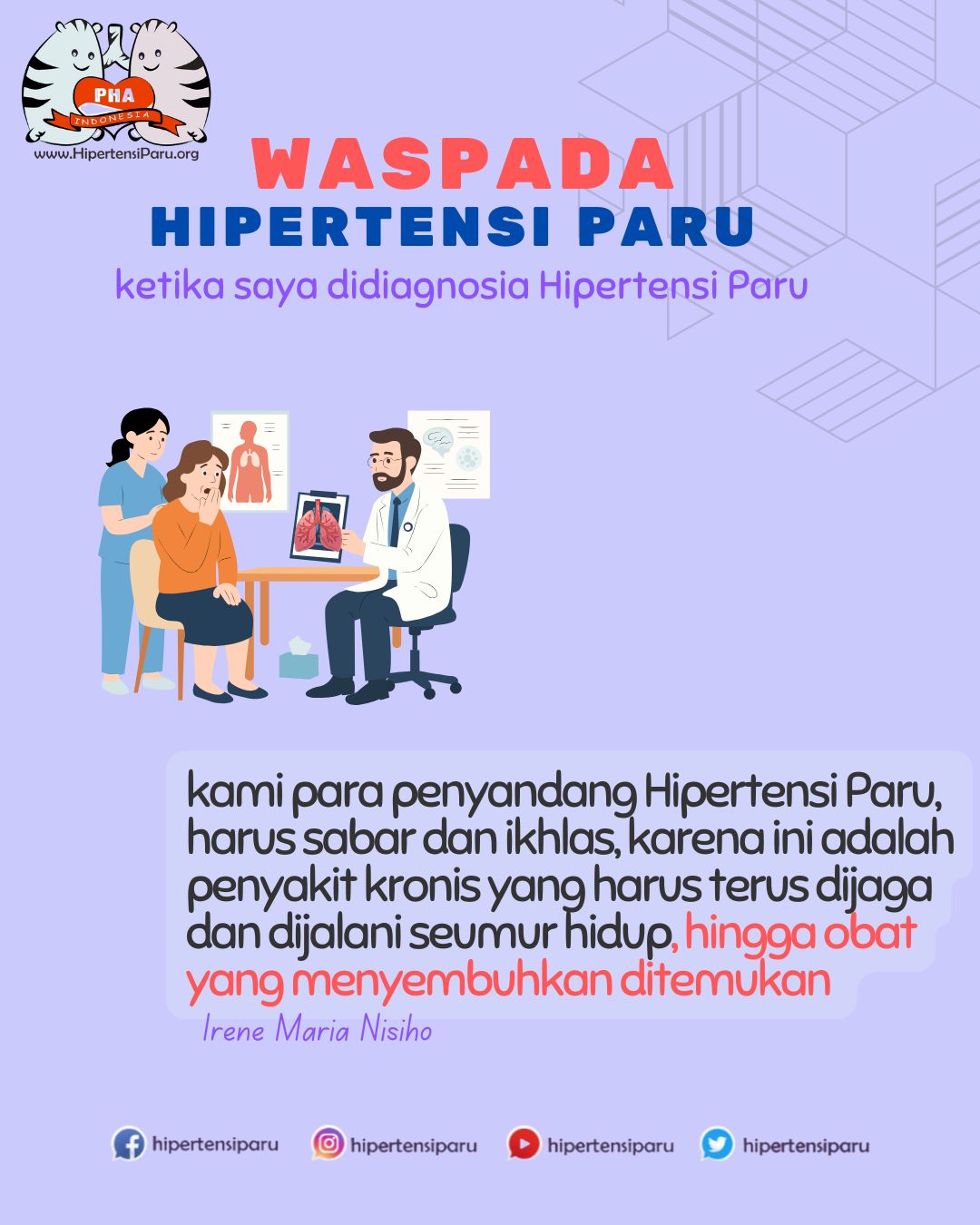 Saya baru tahu bahwa ada penyakit bernama Hipertensi Paru. Ketika mengetahuinya, ternyata saya adalah pasien dengan Hipertensi Pulmonal atau Hipertensi Paru.